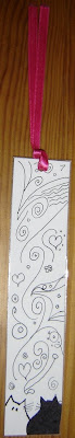 desenho a tinta de gel preta em papel plastificado. Fita de cetim (h e j) e de seda (i). As fitas podem ser trocadas a pedido por outras cores.